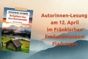 "Schatten über dem Karwendel" - Autorinnenlesung mit Friederike Schmöe Anlässlich des Welttags des Buches im April ist die oberfränkische Krimi-Autorin Friederike Schmöe im Fränkischen Freilandmus... Fränkisches Freilandmuseum, Fladungen 12.04.2026